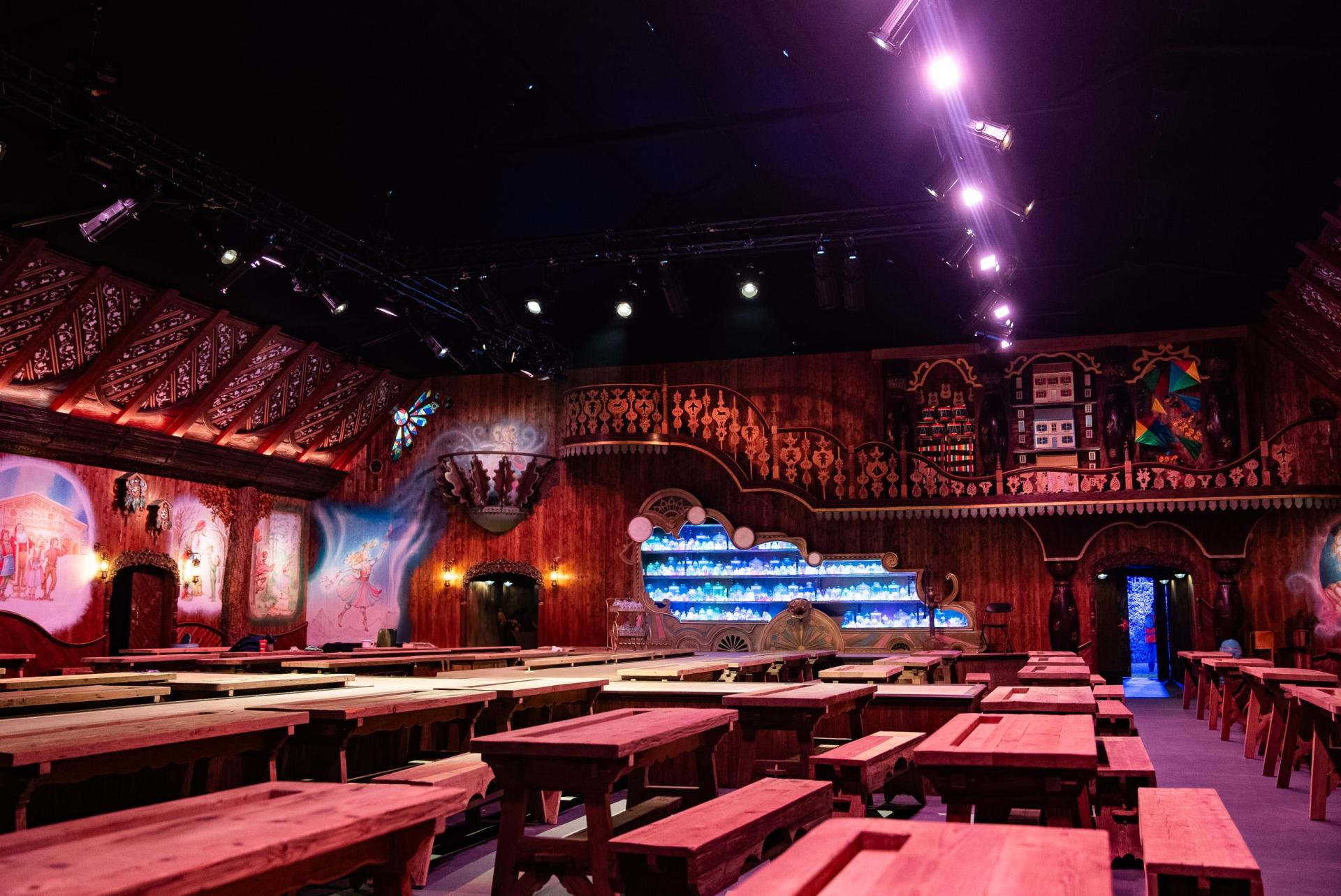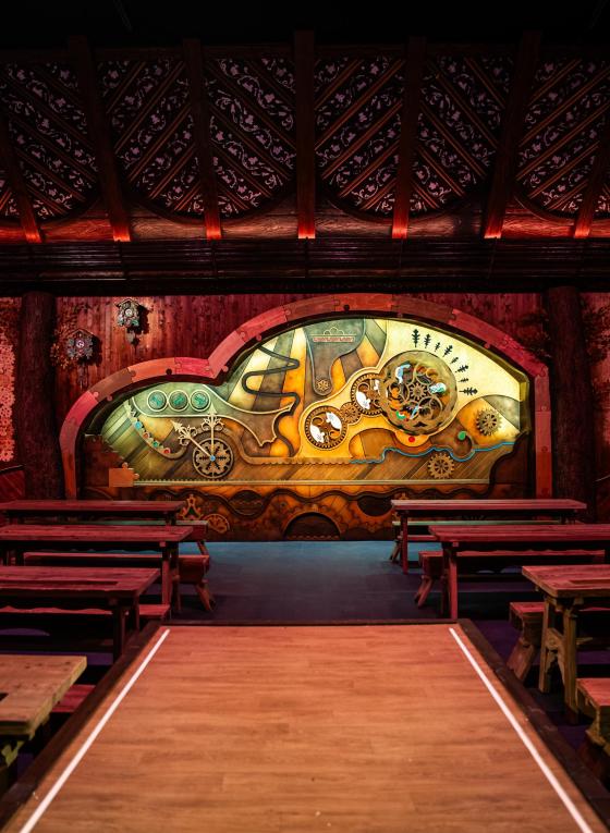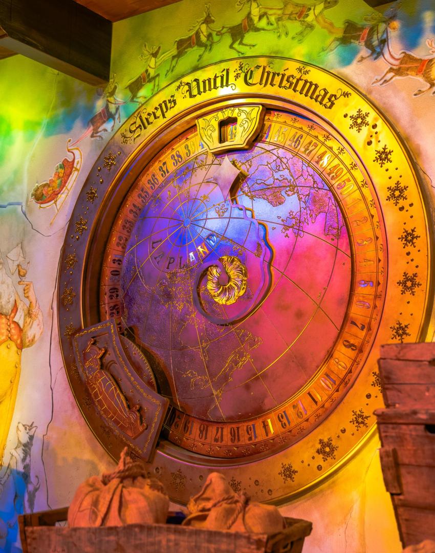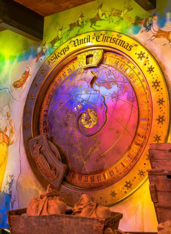 A core part of the immersive journey where ‘Small Folk’ join elves to make toys is ‘The factory’ – a large-scale environment with workbenches, suspended rotating toys, cogs, and a working conveyor belt system.